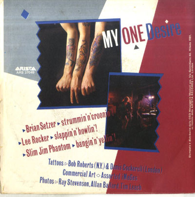 official briansetzer.com website, at that time run by Tommy Maguire. Apparently the pin-up girl was drawn up in 1955 and was used by Arista. The artist's name was Robert Patterson. Please see the original webpage which was saved as pdf by clicking here for the full story. |