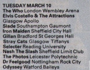 Taken from the gig guide at Smash Hits Magazine issue 59. 5th march - 18th march 1981